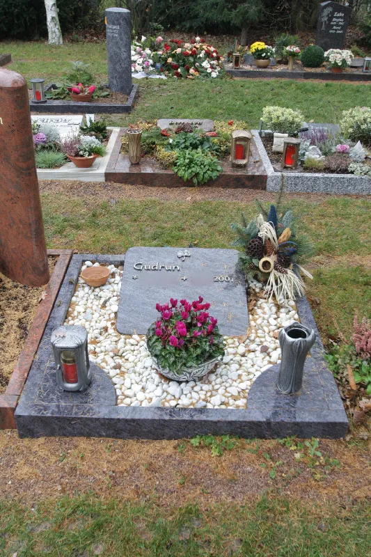 In unserer großen Galerie mit Referenzfotos finden Sie zahlreiche Ideen. Sie zeigt Beispiele für Urnengräber in unterschiedlichen Materialien, Formen und Größen – von schlichten Rasengräbern bis hin zu kunstvoll dekorierten Familiengrabstätten.